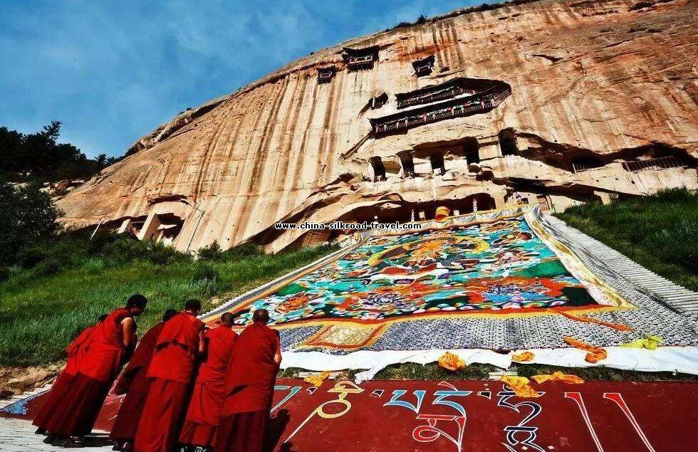 After breakfast, we will be visiting the Mati temple, The temple is located at the foot of Linsong Mountain with charming landscape and cut between the cliffs, including seven sites, namely, South Branch and North Branch, Upper, Middle and Lower Guanyin Caves and 7 Gold Tower Temples and Thousand-Buddha Cave. A series of horse shoe prints are visible in Grotto 9 , which are said to be left by a heaven horse. As a result, the temple was named for the horseshoe prints left by the legendary heaven horse, which become the treasure of the temple. after that, continue to visit the Giant Buddha Temple, which is the important place of the Silk Road. Midway in the Hexi Corridor along the Silk Road lies the historic city of Zhangye, the centerpiece of which is the mysterious Giant Buddha Temple. Located in the southwest corner of Zhangye in Gansu Province, the Giant Buddha Temple is the largest architectural relic in Gansu Province of the Western Xia (1038-1227) period. China's largest reclining Buddha is well preserved in this temple.