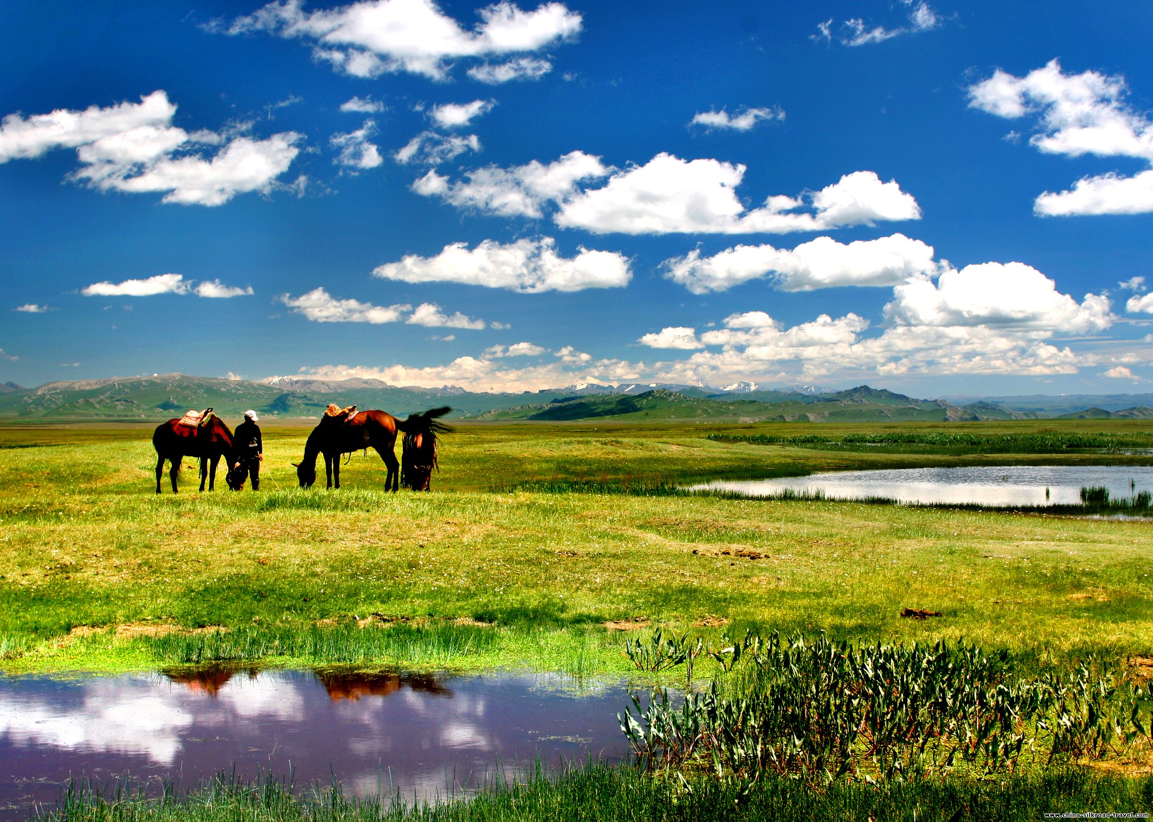 After simple breakfast in the hotel, enjoyed the nomadic life of the modern Mongolian and Kazakhs in Naraty Pastureland, head to to Bayinbuluk and enjoy the grassland there.taking up 1,000 square kilometers. In 1986 it was listed by the State as the national nature reserve.It is a paradise of flocks of swan. The swans are like white sails wandering on the lake,carefree and contenting themselves.Therefore it is offered the name"Swan Lake". please note today there might be some check point for your travel permit due to the road is used for military transportation. check into hotel upon arrival.