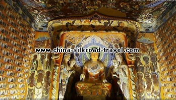 Mogao Grottoes: The Mogao Grottoes, a shrine of Buddhist art treasures, is 25 km from downtown Dunhuang on the eastern slope of Mingsha Shan (Echoing Sand Mountain). A network of plank-reinforced roads plying north to south 1600 meters long lead to the cave openings, which are stacked five stories high, some reaching up to 50 meters.