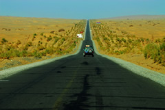 Taklamkan Desert Highway It is the biggest moving desert in the world and most of the people believe that it has buried most of good civilizations among the central Asia. It has occupied land more than 345,000 square km, Taklamakan in local Uyghur language means “Tha desert which buried some places under”, and after some western explorers explore this desert on the early of 20th century, they have given another meaning which is “One go, but never come back".