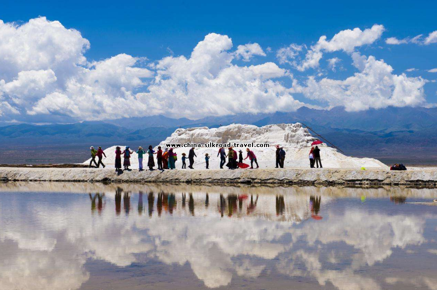 Caka salt lake means “the sea of salt” in Mongolian. It lies in the center of Caka Basin, the south of Caka town. which is a scenic spot of combining the scenery tourism with industry tourism, For it belongs to a typical chloride salt lake. the salt crystal in Caka Salt Lake is big, pure and sweet-smelling. Now it is extracted with modern technological process and some new productions are developed such as iodine salt, cleaned salt, regenerated salt, zinc salt, refined salt and salt for domestic animals.