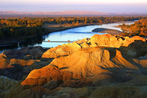 Five-Colored Bay: An interesting spot with Yadan landform on one side of Irtysh River yet oasis on the other side. Irtysh River is the only westward flowing river of China.