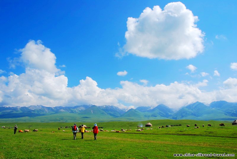 Naraty Grassland: Located at the important line of communications connecting Southern and Northern Xinjiang, the north part of Naraty Grassland connects to Gongliu and Xinyuan County Town,and west part to Hejing county. East part comes from Aikendaban of northwest Hejing and west part reaches to Wulandaban. It is about 150 kilometers long and 3,000-4,500 meters above sea level. The northern slope faces the wind and yearly rainfall is 400-700mm. A large stretch of wild apple trees have been found in Xinyuan County at the 1,500-2,000 above sea level.The Naraty Grassland has been listed as a nature reserve.