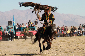After breakfast we will head to Uujim valley at Sagsai county where our events are being held. We will arrive late in the afternoon. Here we will visit Kazak families, who are famous by their century old tradition in the training of golden eagles.