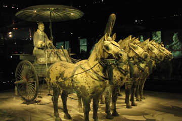 The Terra-cotta Warriors and Horses: This is one of the greatest archaeological findings of the 20th century - the army of terra-cotta warriors and the bronze chariots entombed in vast underground vaults at emperor Qin Shi Huang's tomb from two thousand years ago. It is a sight not to be missed by any visitor to China. Emperor Qin Shi Huang ascended to the throne of Qin at the age of 13 in 246 BC. Under him, Qin conquered the other six warring states and became the first true emperor, or Shi Huang, of China.