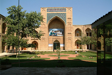 In the morning we drive to Tashkent. Visiting Mosques and Madrassas (Islamic schools) Housing Craft Workshops, Kukeldash Medressa- is located on a high hill in the area of Chorsu square. The builder of the madrasah was a vezir of the Tashkent khans (1551-1575), called Kukeldash ("the foster-brother of the khan"). The madrasah has a traditional composition: an extensive court yard, built on khudjras, with darskhana and a mosque in the corners.History Museum of Uzbekistan and the Museum of Fine Arts.