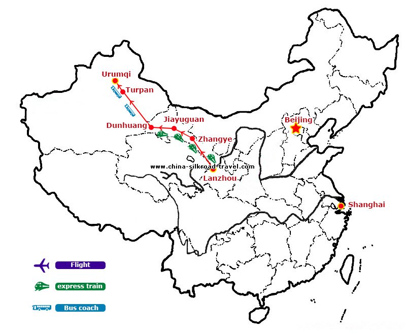 Lanzhou,Zhangye,Dunhuang,Turpan,Urumqi |