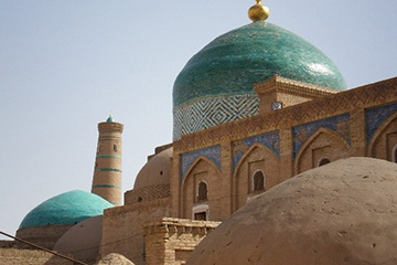 Today the old part of Ichan-Kala is called an open-air museum and is guarded by UNESCO. The rather small territory of Ichan-Kala holds - 2 palaces, more than 60 madrassah and small-sized mosques, mausoleums, a cathedral mosque, a covered market, caravans - sheds and bath-houses, and apartment houses. then we will head to visit Mohammed-Amin Khan Madrassah and Minaret (XIX c.), Kunya Ark – Old Fortress (XVII c.), Pakhlavan Mahmud Complex (XIV-XIX cc.) with its tiled courtyard
